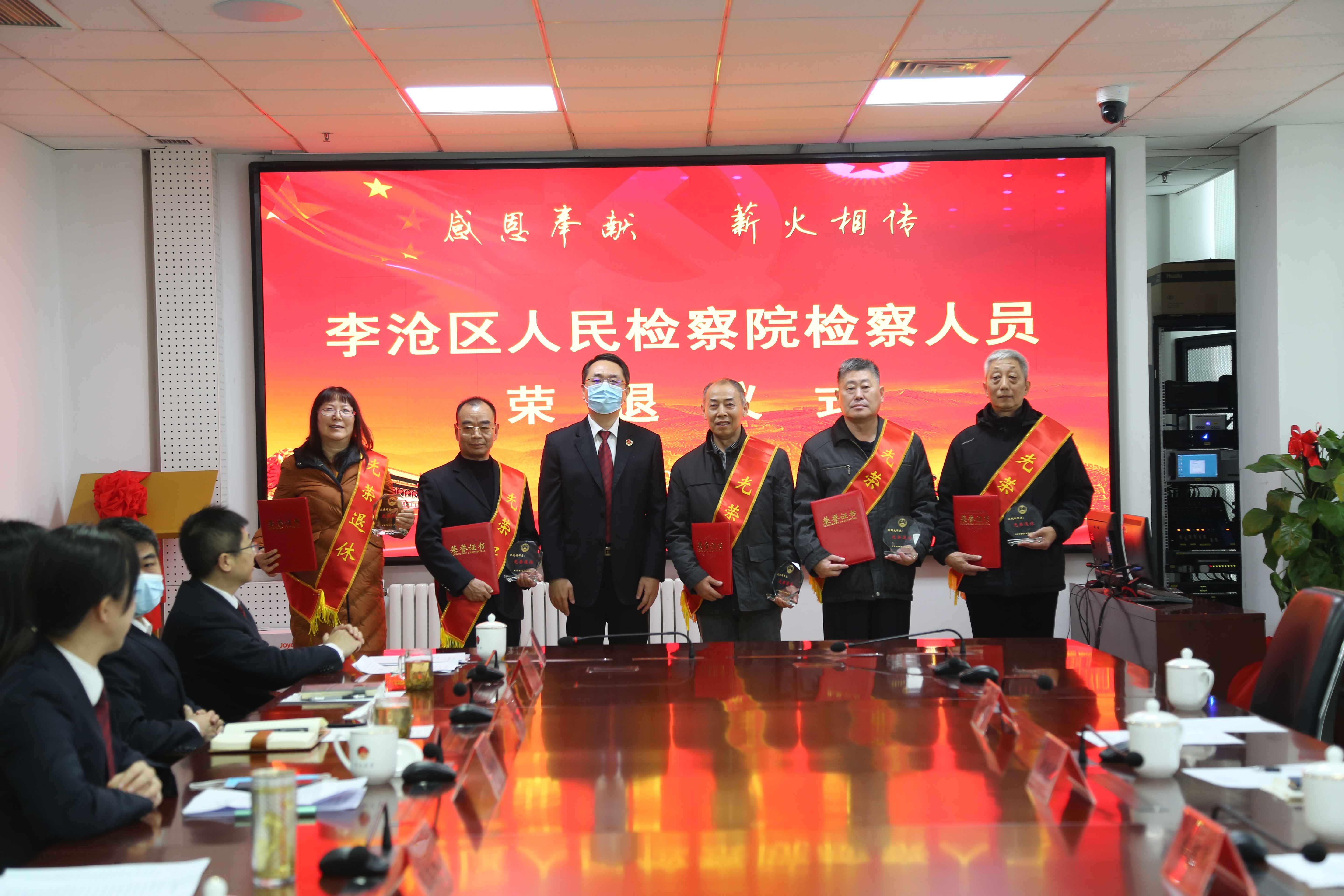 12月28日,李沧区人民检察院开展2020年度检察人员荣退仪式,对多年来为检察事业默默奉献的5名荣退老干部进行表彰和感谢。